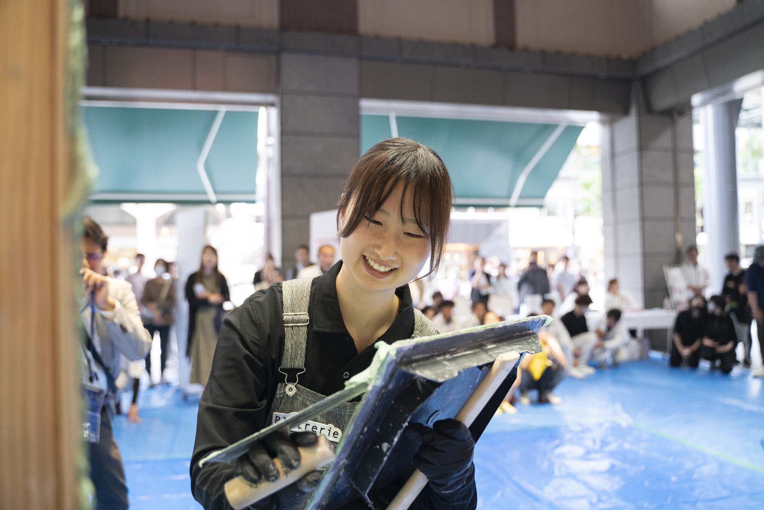 今年もプラトリエで活躍中の若手左官職人達による壁塗りパフォーマンスや
